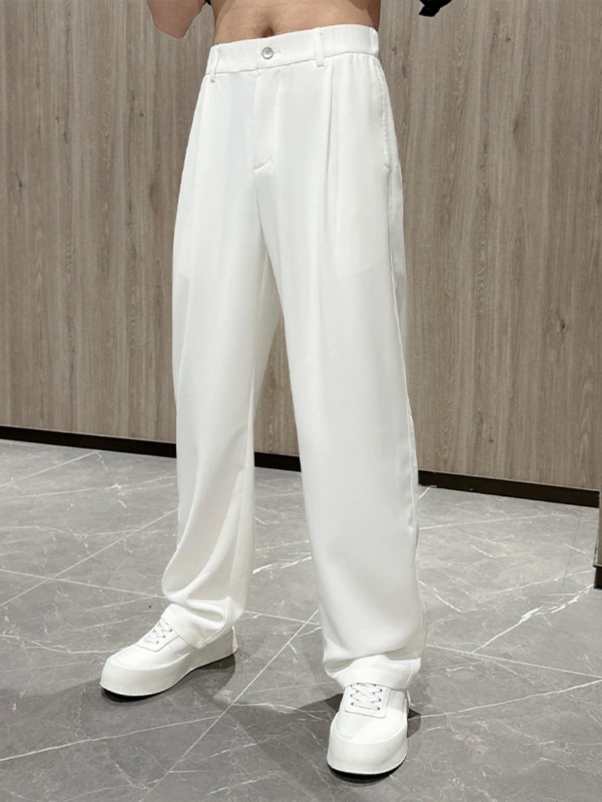 Spring All-Match Drape Trousers Men's Straight Ice Silk Casual Pants White Suit Anti-Wrinkle Light Nine-Point Trousers