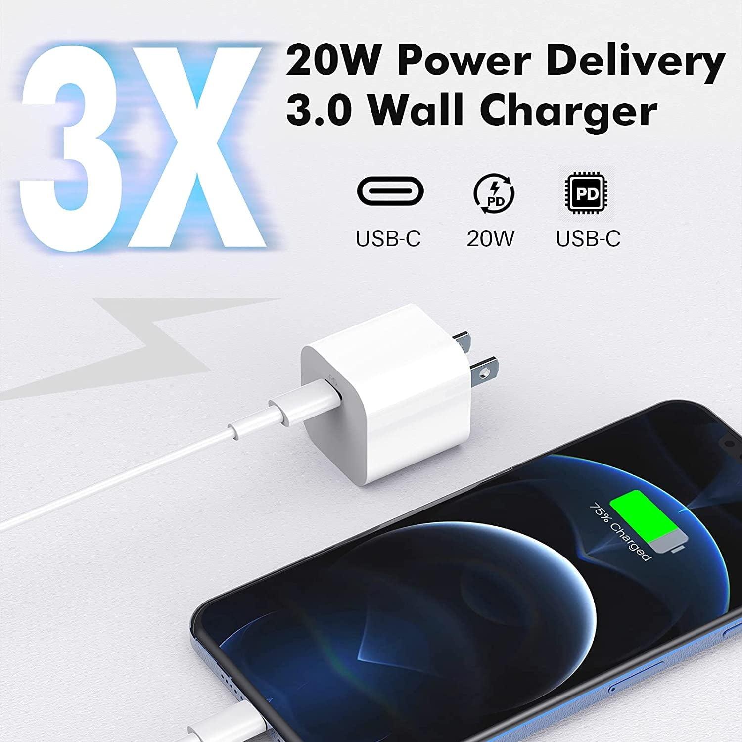 2-Pack 20W USB C Wall Charger – Fast Charging Block with USB-C to Lightning Cable for iPhone, iPad, and More