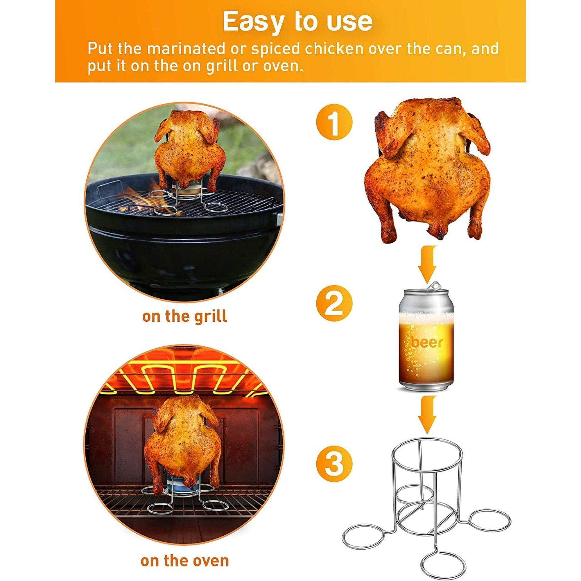 The HUART Beer Can Chicken Holder (2 Pack) is the perfect tool for grilling or smoking delicious beer can chicken. Each rack measures 5.9 inches, designed to hold your chicken upright securely, ensuring even cooking and crispy skin. Ideal for use on a grill, oven, or smoker, this versatile rack enhances flavor by allowing the beer to steam and infuse the chicken. Made from durable, heat-resistant material, the HUART Beer Can Chicken Holder guarantees long-lasting use and helps you achieve a perfectly roasted chicken every time.