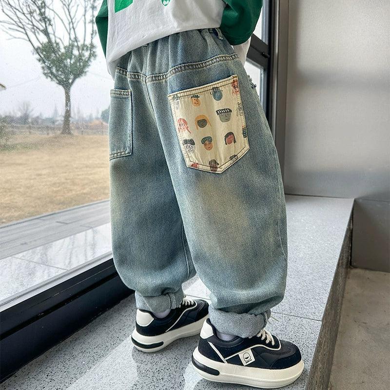 Elevate your little boy's style autumn jeans. These handsome, loose-fit casual pants are perfect for spring and autumn, providing comfort and versatility for everyday wear. Ideal for active play, they effortlessly combine fashion and function.
