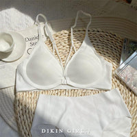 Introducing our 2024 Front Buckle Bra Set, designed to enhance and flatter small chests. This glossy, thin bra features a gathered design that creates a beautiful lift, showcasing a fuller silhouette. With a seamless construction and a stunning back design, this set is perfect for summer wear. Embrace comfort and style with this chic addition to your lingerie collection.