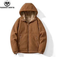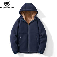 Men’s Winter Fleece Hooded Jacket – Solid Color Zipper Casual Coat