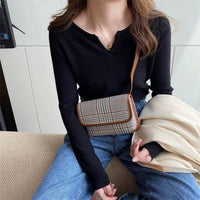 2024 Women's V-Neck White Long-Sleeved Knitted Shirt