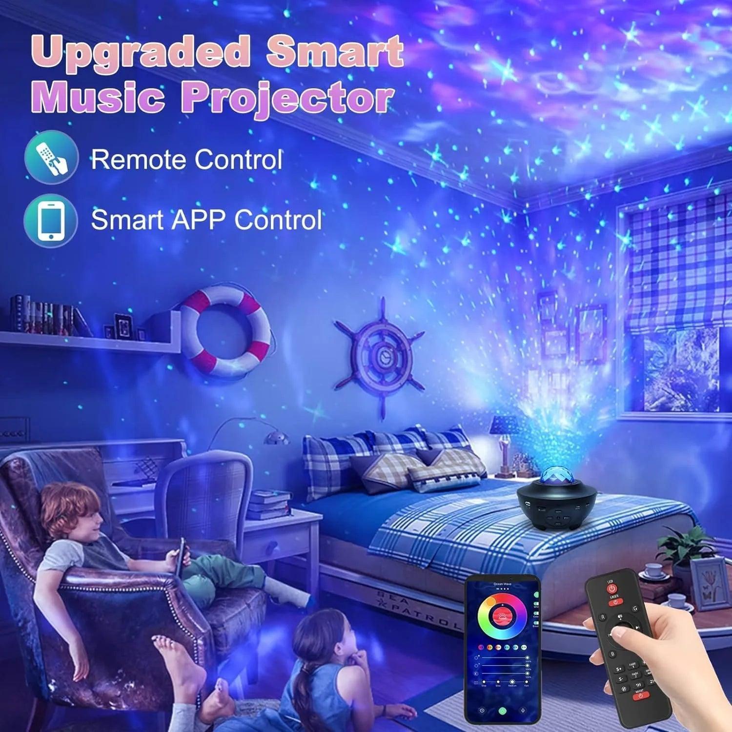 Immerse yourself in a galaxy of wonder with the 4-in-1 Star Projector. This innovative device combines WiFi Smart App control, Bluetooth music speaker, remote control, and timer functionality, creating an enchanting ambiance perfect for bedrooms, parties, or relaxation.