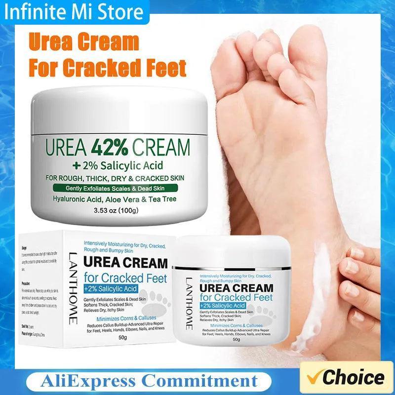 Revitalize your skin with our 40%/42% Urea Cream, specially formulated to combat cracked and rough skin on hands and feet. This powerful exfoliating cream gently removes dead skin while deeply nourishing and moisturizing, promoting smooth, healthy skin. Ideal for those with dry, damaged, or calloused areas, it helps restore skin’s natural barrier and improve texture. Perfect for daily use, this cream is a must-have for effective skin repair and care, ensuring your hands and feet feel soft and rejuvenated.