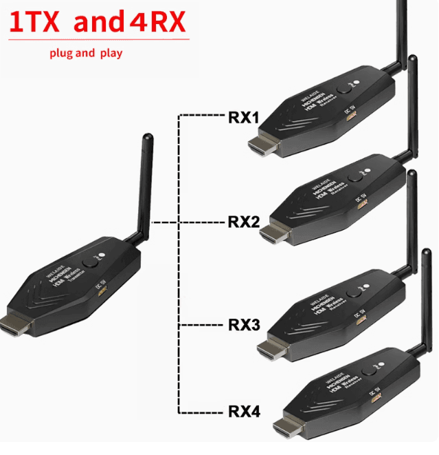 The 50m Office Meeting Wireless Transmission HDMI Extender allows seamless HD video and audio transmission up to 50 meters. Ideal for office meetings, conferences, and presentations, it eliminates the need for long HDMI cables, providing wireless connectivity between your devices and displays. Supports high-definition video, ensuring clear and professional presentations. Easy to set up with minimal cables, making it perfect for dynamic workspaces.