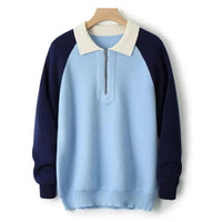 Autumn/Winter Cashmere Sweater - Contrast Color Half Zipper Polo Neck Pullover