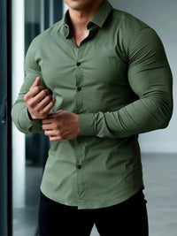 Autumn Men's Casual Solid Color Shirts - Large Size Muscle Fitness Long-Sleeved Shirts