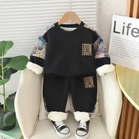 Baby Clothes Autumn & Winter Plus Velvet Casual Sports Two-Piece Suit for Boys – Cool Sweatshirt & Sweatpants