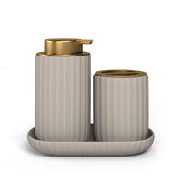 Beautiful Fluted Stoneware Bath Accessories 3-Piece Set by Drew Barrymore – Porcini Taupe
