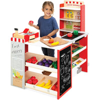 The Best Choice Products Kids Pretend Play Grocery Store Wooden Supermarket Set is the ultimate interactive toy for young shoppers! This beautifully crafted wooden set features a cash register, a chalkboard for pricing and notes, and plenty of storage space for food items. With a vibrant red design, it encourages imaginative play, helping kids develop essential skills such as counting, social interaction, and organization. Ideal for children who love pretend play, this supermarket set offers hours of fun for kids aged 3+.