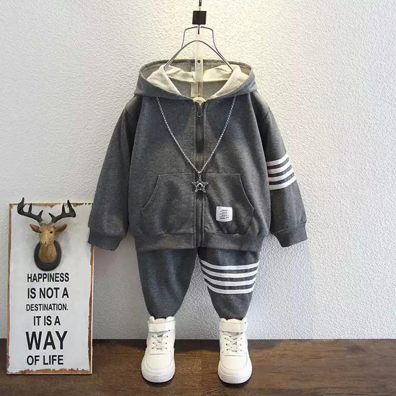 This Boys Sports Suit for Autumn is the perfect combination of style and comfort for your little one. Designed for active boys, this casual set includes a sporty jacket and matching pants, made from soft and breathable fabric. Ideal for cooler weather, this set keeps your baby comfortable while looking stylish. Whether for everyday wear or outdoor activities, it provides flexibility and warmth. Perfect for autumn days, this suit is a must-have addition to your child's fall wardrobe.
