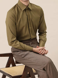Casual Elegant Wide Collar Gentleman Non-Iron Long-Sleeved Shirt, Men's Fashion High-End Business Commuting Formal Shirt Trend