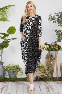 This floral print midi-dress is a stunning addition to your wardrobe, featuring a contrasting polka dot vertical line with buttons, side pockets, 3/4 sleeves, and a classic round neckline. Perfect for various occasions like day parties, vacations, date nights, the beach, church, and weddings, this dress is versatile and chic. Pair it with your favorite accessories to elevate your look and exude effortless beauty. Embrace your style with this elegant and versatile midi-dress for a graceful and fashionable ensemble.