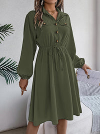 Collared Neck Long Sleeve Dress with Pockets