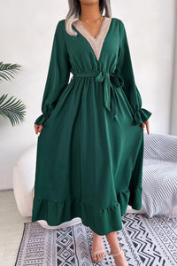 - Features: Tie, ruffle