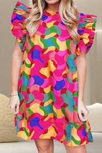 Contrast Print Round Neck Cap Sleeve Mini Dress