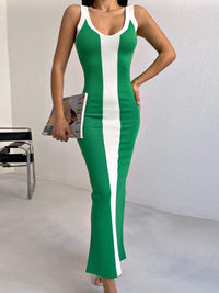 Contrast Wide Strap Slit Midi Dress