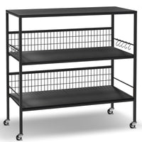 The Copedvic 40" rolling kitchen cart island offers versatile storage with 3-tier shelves, 10 hooks, and a sturdy design. Ideal for use as a microwave oven stand or additional kitchen storage, it features smooth-rolling wheels for easy mobility and a sleek black finish.