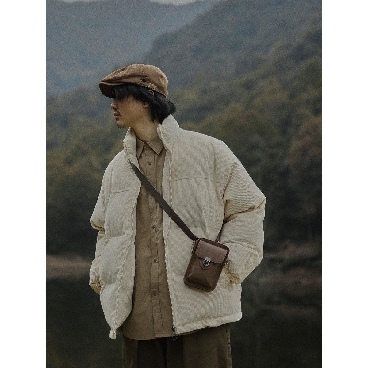 Stay warm and stylish with the Crisis Youth Corduroy Stand Collar Cotton Jacket. This trendy winter jacket features a stand collar and a thickened cotton lining for superior warmth. The corduroy fabric gives it a retro, Japanese-inspired look, while the puffer design ensures comfort and insulation against the cold. Perfect for the modern man, this jacket combines fashion with functionality. Available in multiple sizes, it’s the ideal choice for casual wear or layering in cold weather.