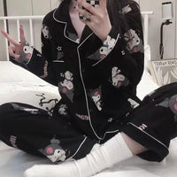 Cute Cartoon Purple Girls Pajama Set - Long Sleeve & Trendy