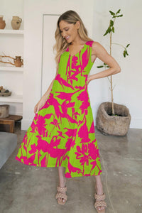 FAM-FAM Tiered Printed V-Neck Sleeveless Dress