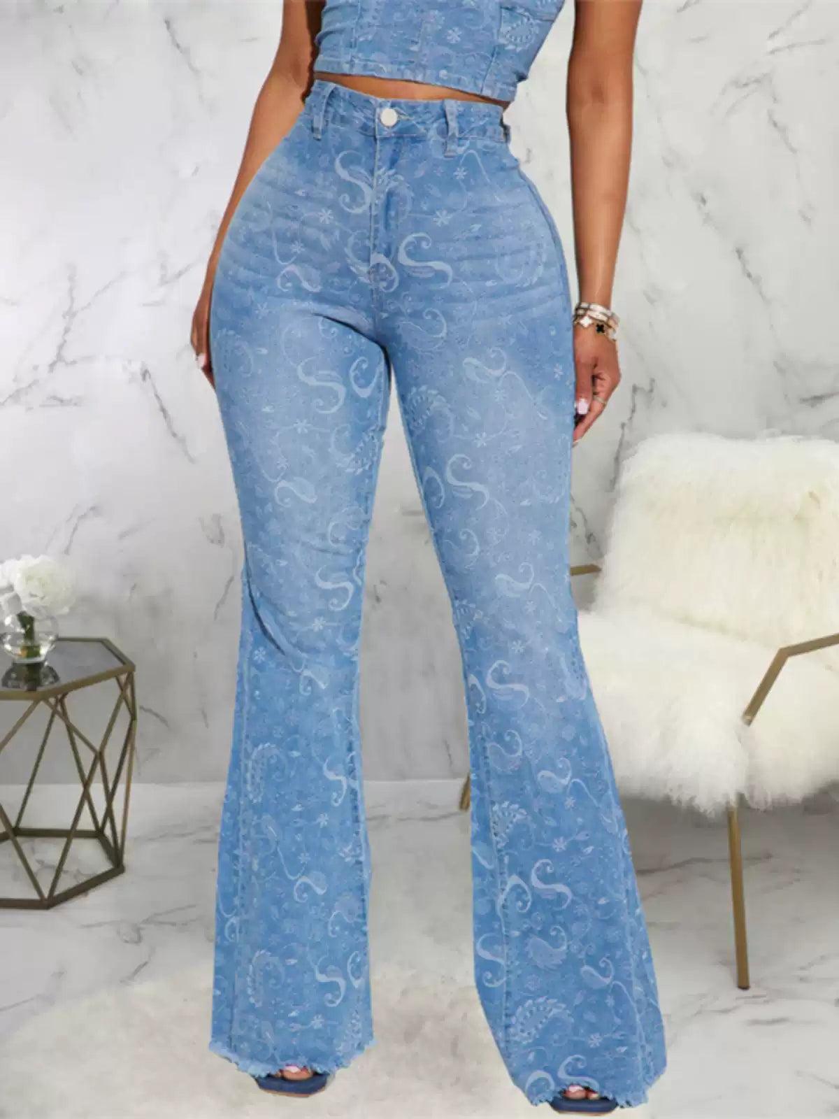 Fashion Women’s Stretch Jeans - Printed Bell Bottom Pants for Ladies