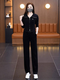 Refresh your autumn wardrobe with our stylish casual sportswear suit for women. This 2024 new style features a fashionable pink lapel design that adds a chic touch while offering an age-reducing effect. The two-piece suit combines comfort and flair, perfect for both workouts and casual outings.