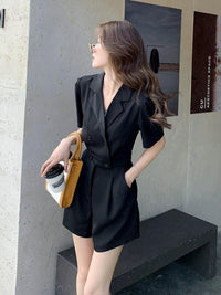 Step into summer with our new French style jumpsuit for women. This high-grade, high-waist design features a sophisticated suit collar and chic shorts, blending elegance with comfort. Perfect for casual outings or stylish gatherings, it’s an essential addition to your summer wardrobe.