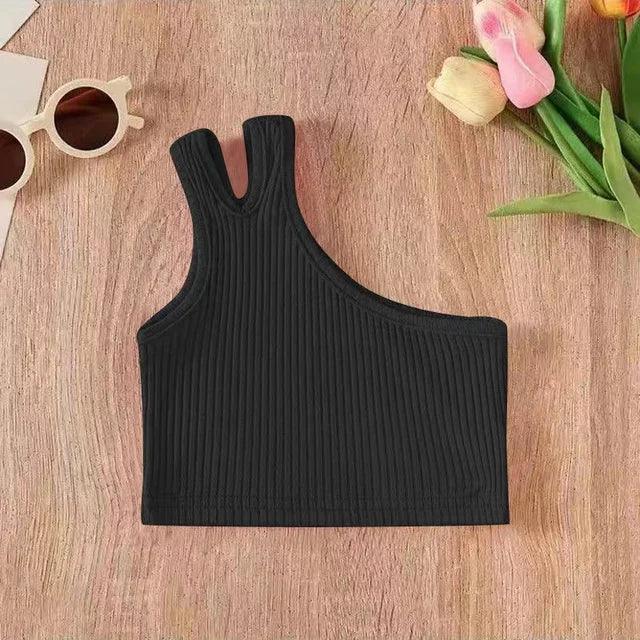 Girls One-Shoulder Camisole Crop Tops | Summer Sleeveless Vests