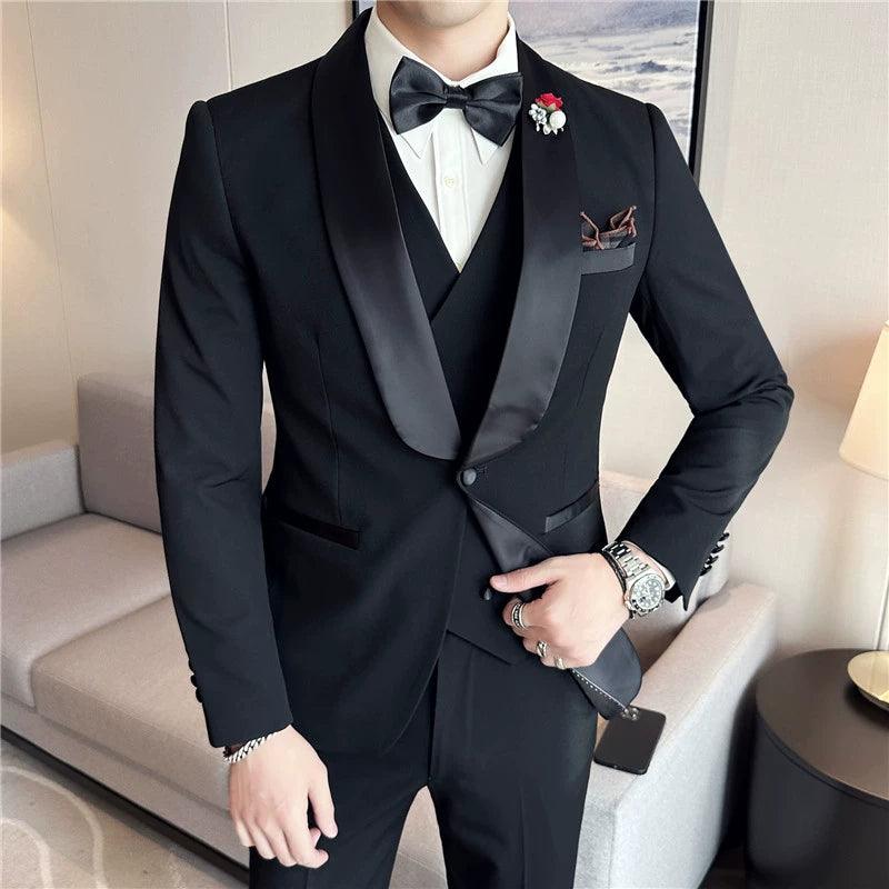 Groom Tuxedo Suit for Men - Slim Fit Wedding Suit with Peaked Lapel