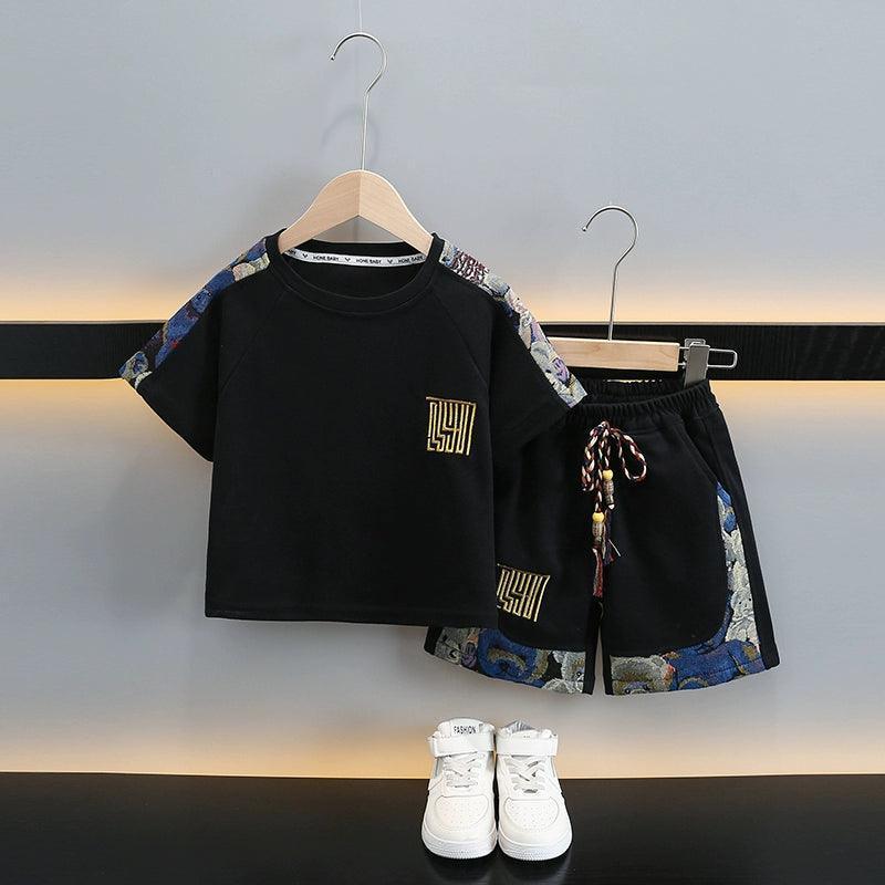 Elevate your child's summer wardrobe with our handsome boy short-sleeved suit! This stylish outfit features a unique national style design, perfect for active play and casual outings. Made from lightweight, breathable fabric, it ensures comfort while keeping your little one looking trendy. Ideal for summer adventures, this sportswear is a must-have for any fashionable boy!
