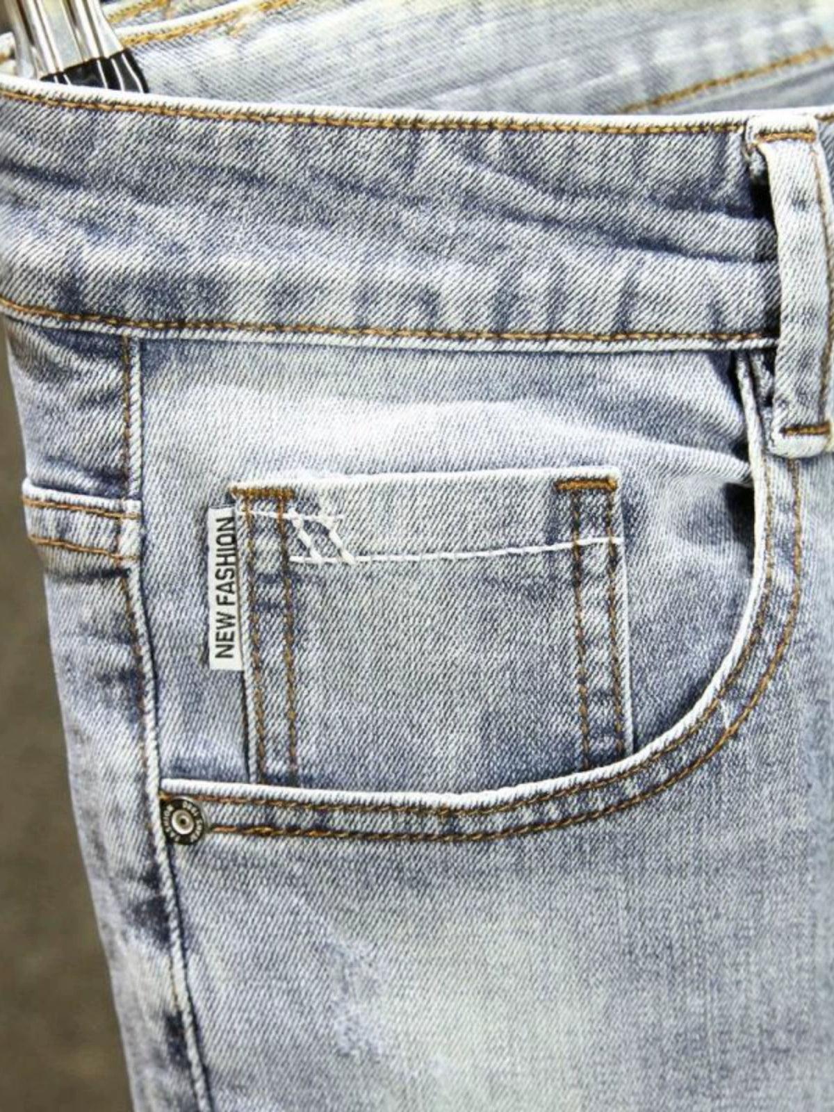 High-End Washed Men’s Jeans – Slim Fit Style Light-Colored Skinny Pants