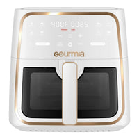Cook delicious, crispy meals with the Gourmia 8 Qt Digital Window Air Fryer (Model GAF824). This spacious air fryer features a large 8-quart capacity, perfect for preparing meals for the whole family. The digital touchscreen offers 12 one-touch presets, making it easy to cook a variety of dishes from fries and chicken to fish and vegetables with just a tap. The transparent window allows you to monitor your food as it cooks, ensuring perfectly crisp results every time. With its fast air circulation technology, this air fryer delivers crispy, golden-brown food with little to no oil, making it a healthier cooking option. The Gourmia GAF824 is easy to clean, energy-efficient, and perfect for kitchen countertops, providing convenience and versatility for all your cooking needs.