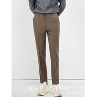 KARESINO Men's Solid Color Straight Drape Slim Suit Pants Business Gentleman Casual Trousers
