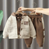 Keep your little one cozy and stylish with this Korean-inspired velvet two-piece set. Perfect for autumn and winter, this suit includes a hooded jacket and matching pants, designed for small to medium-sized boys. Made with soft, plush velvet fabric, it offers ultimate warmth and comfort for the cold season. Ideal for casual outings or playdates, this set combines a trendy look with everyday practicality. Available , it’s the perfect addition to any child’s winter wardrobe.