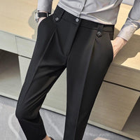 These light luxury casual trousers for men feature a high-end double pleated design, offering an elegant and refined look. Crafted for a light, mature style, these nine-point suit trousers are perfect for men who appreciate both comfort and sophistication. The trendy style adds a touch of modern flair, making them ideal for both formal and casual occasions.