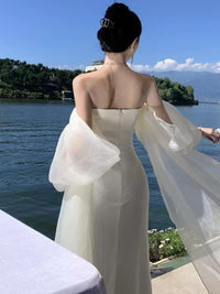 Light wedding dress is designed for brides seeking elegance and comfort. Perfect for outdoor photoshoots or as a reception gown, its lightweight fabric and refined design offer a chic, high-end look for a modern bride. The dress combines light luxury with a unique, sophisticated style.