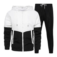 Men's Casual Patchwork Tracksuit - Hooded Jacket & Sweatpants