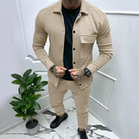 Men's Heavyweight Twill Jacket & Casual Pants Set - Solid Color