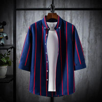 Refresh your summer wardrobe with our Men's Striped Short-Sleeved Shirt in trendy Korean style. Featuring a stylish striped pattern and a modern 7/3 sleeve design, this shirt offers a sleek, youthful look. The lightweight, thin fabric ensures comfort in warm weather, while the half sleeves keep you cool and stylish. Perfect for casual outings or laid-back weekends, this shirt blends fashion and comfort effortlessly.