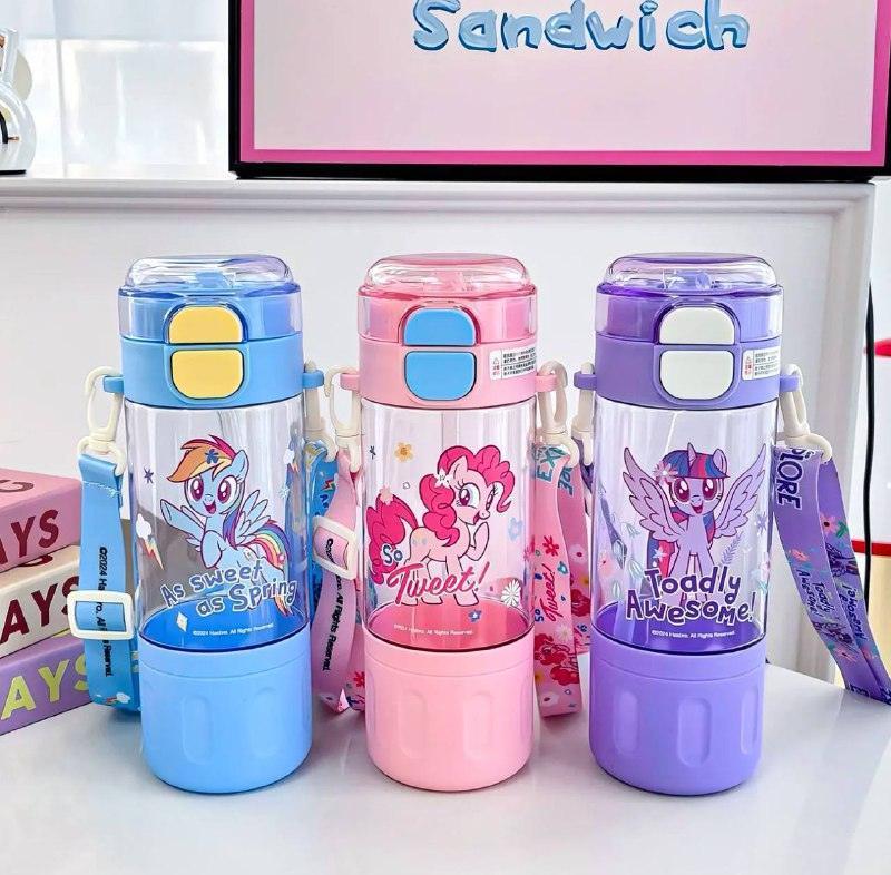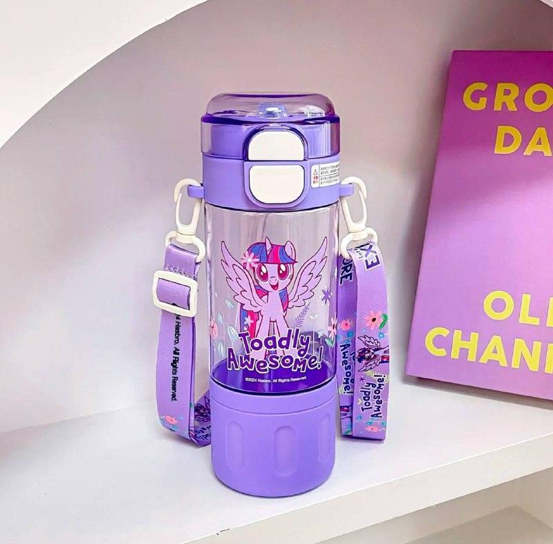 This My Little Pony straw water cup is specially designed for girls, featuring a cross-body strap for easy portability. Made from durable plastic, it’s perfect for school or outings. The fun and colorful design will make hydration fun for kids, while the portable feature ensures convenience on the go.