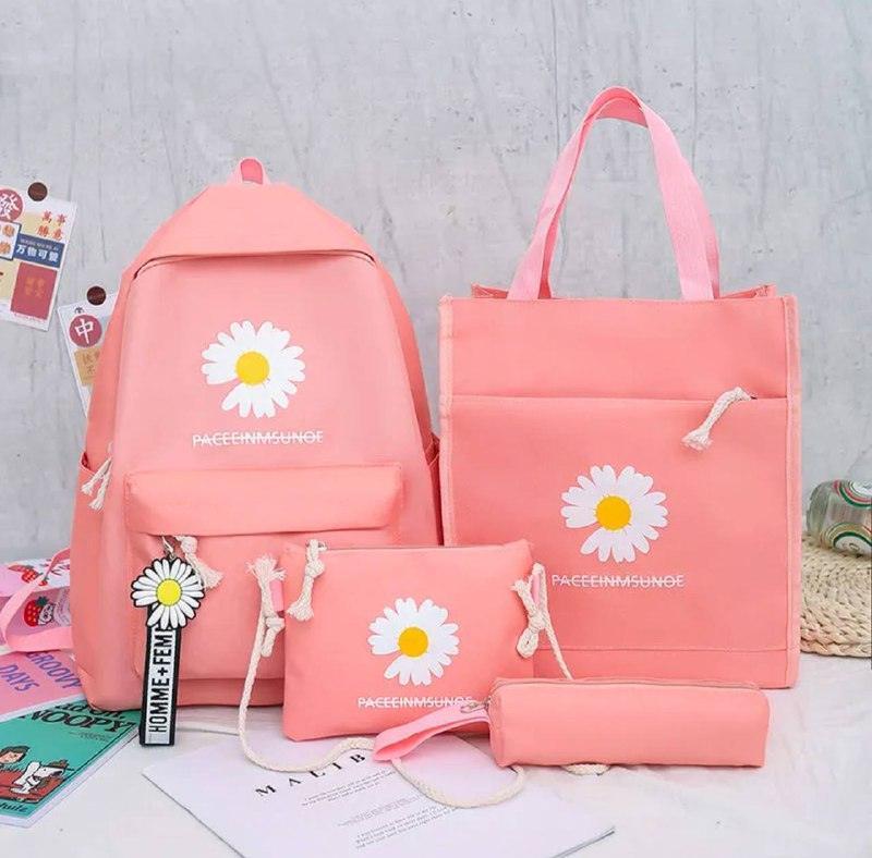 This 4pcs set of casual daisy print backpacks is perfect for school and everyday use. Featuring a vibrant daisy pattern, each backpack is spacious, durable, and stylish. Ideal for carrying school essentials, the set includes matching accessories, making it a complete and trendy option for students.