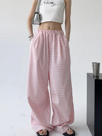 Stay stylish this summer with our 2024 plaid wide-leg pants. Featuring a high waist and slim elastic waistband, these breathable, casual pants are perfect for warm days.