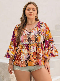 Plus Size Printed Tie Neck Blouse