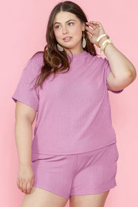 Plus Size Round Neck Short Sleeve Top and Shorts Set