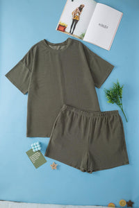 Plus Size Round Neck Top and Pocketed Shorts Set