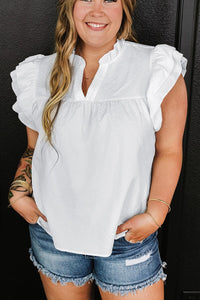 Plus Size Ruffled Notched Cap Sleeve Blouse