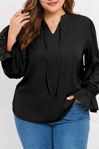 Plus Size Ruffled Tie Neck Flounce Sleeve Blouse