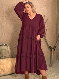 Plus Size Ruffled V-Neck Long Sleeve Dress